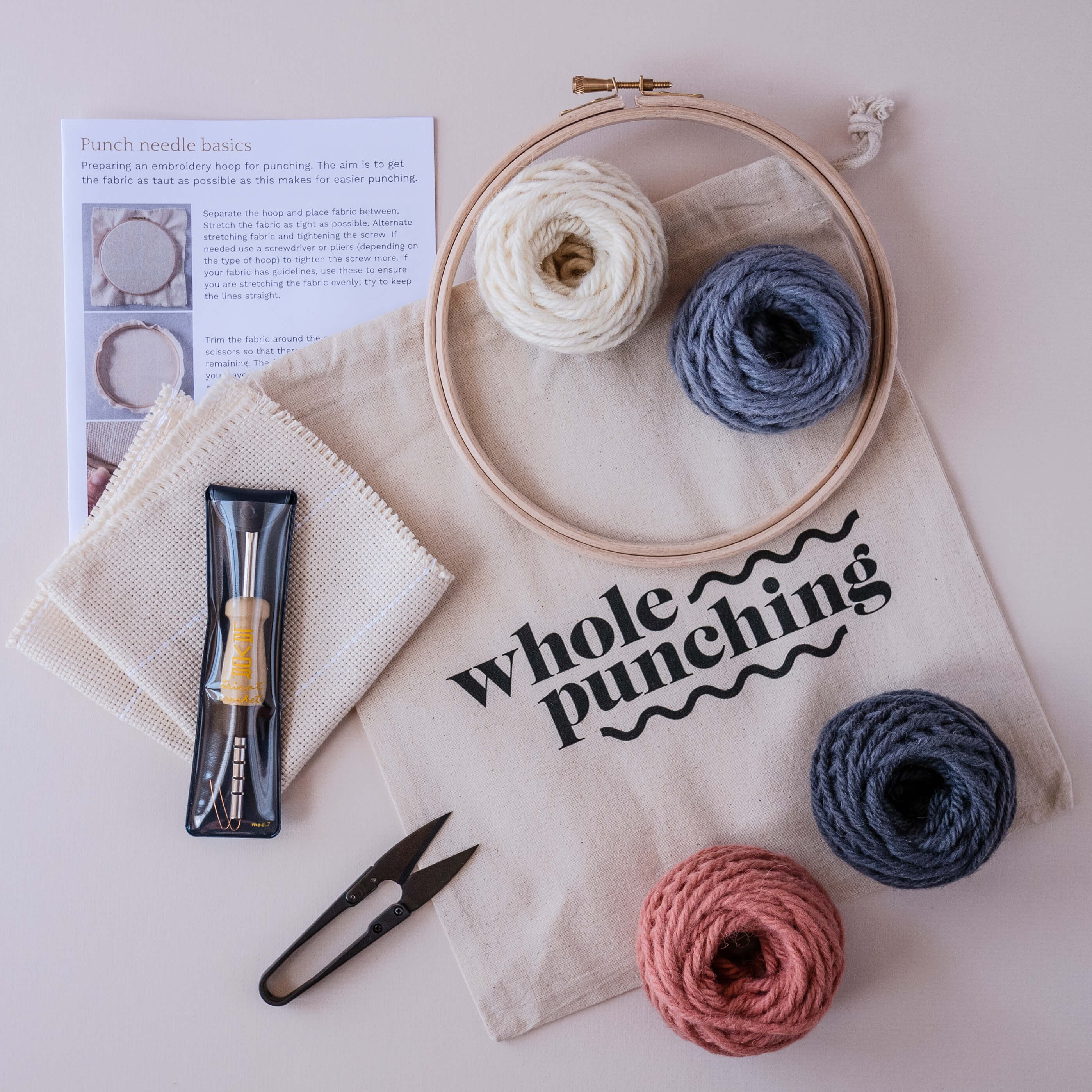 DIY chunky punch needle kit with 100% wool yarn